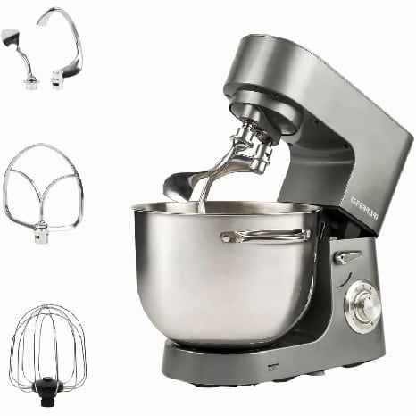 Impastatrice Planetaria, 1800 W Max, 8 Litri, 6 Velocità, Pulse, Contenitore inox, Dispositivo di sicurezza, Accessori inclusi, Grigio Antracite